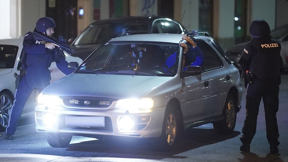 In photos taken in Vienna on the night of the tragic attack, the police are seen patrolling the streets and searching vehicles and civilians.
