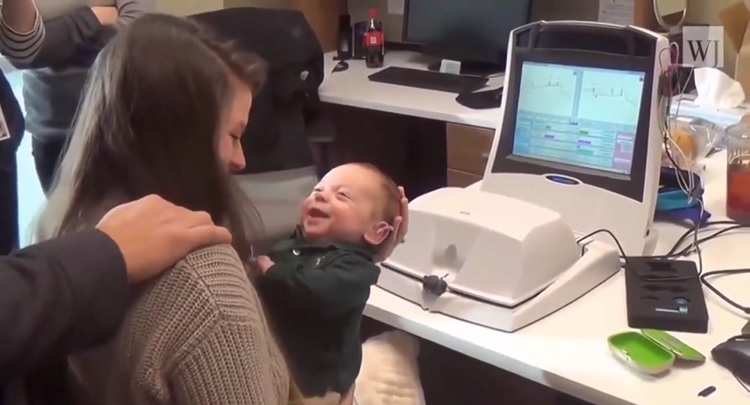 And that’s exactly what happened in this video that captures the exact moment a hearing-impaired baby is finally able to hear his parents’ voices for the very first time thanks to a hearing aid. The way the mom and dad stare at the baby and how the baby stares back is just the sweetest thing. But the magic moment comes when the baby reacts to the voice of the mom and the dad.