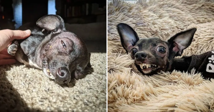 The little chihuahua she picked up after driving for four hours was incredibly misshapen. She knew right away that the dog was abandoned due to her multiple deformities.