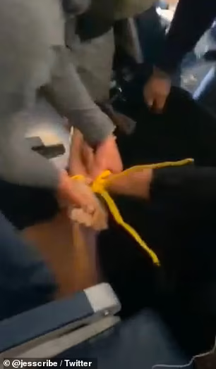 One passenger had caught footage of the incident, showing Williams wrestling with the man whose identity is not yet revealed. Another angle shows Williams putting the man’s hands behind his back to restrict his movement with zip-ties.