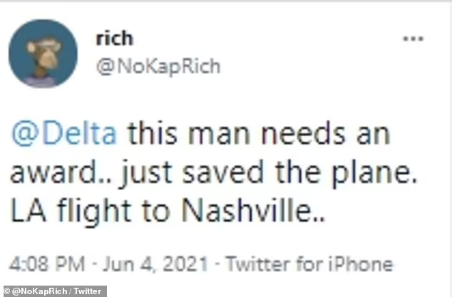 Twitter user @NoKapRich quotes the photo and captions it: “This man needs an award. Just saved the plane.”
