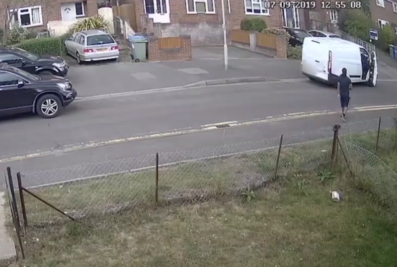 “I only saw the white van drive away at the last minute, as he drove away, and noticed a brown package on the grass outside.