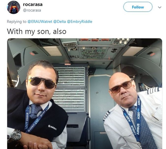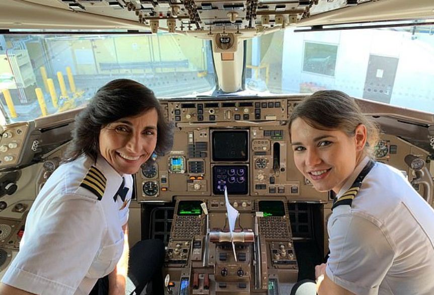 Embry-Riddle Aeronautical University’s worldwide university chancellor Dr. John R. Watret took a trip to the cockpit after finding out that the pilot of the plane is a team of daughter First Officer Kelly Rexon, and her mother Captain Wendy Rexon.