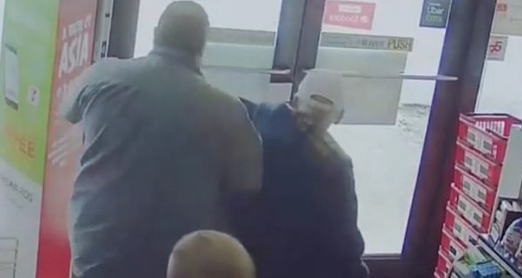 He then moved out of frame, grabbed the frail old man by his collar, and dragged him out of the store and pushed him backward. The 92-year old man could not balance and fell on the sidewalk.