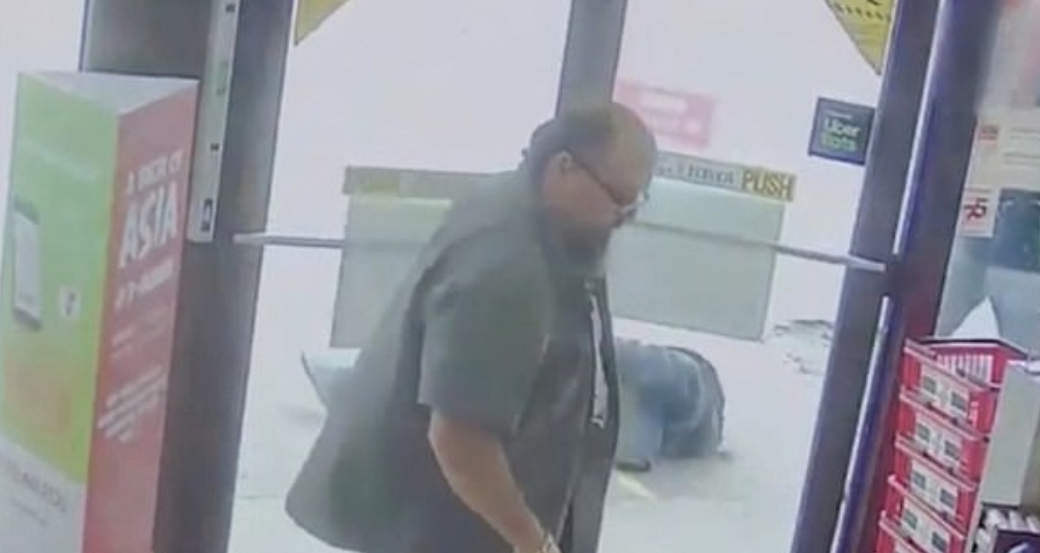 He came back to the store, and went back outside, picked up the man from the ground, and helped him sit on the sidewalk. The suspect did it either after realizing what he had done or to make himself appear less guilty.