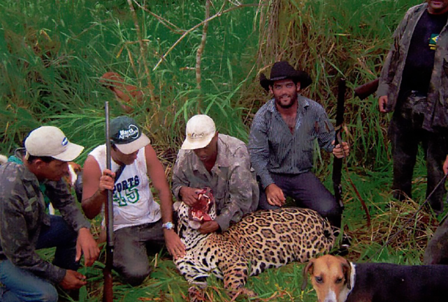 Temistocles Barbosa Freire, a dentist, who is the longest-serving gang member, is believed to have killed 1000 jaguars since 1987. Images of him carrying a dead jaguar on his shoulder and being surrounded by hunting dogs have been photographed.