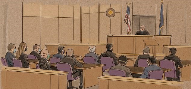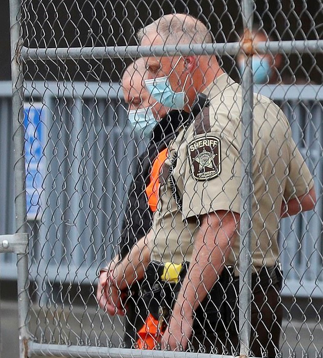 Wearing face mask, handcuffs, and an orange jumpsuit, the 44-year-old was led away by correction officers from the court hearing.