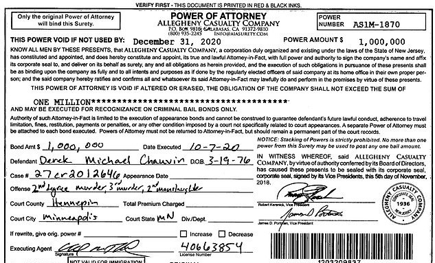 According to reports, Chauvin has been freed after posting a non-cash $1million bond signed by A-Affordable Bail Bonds, Inc.