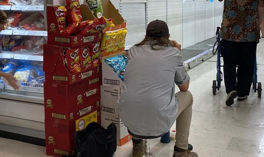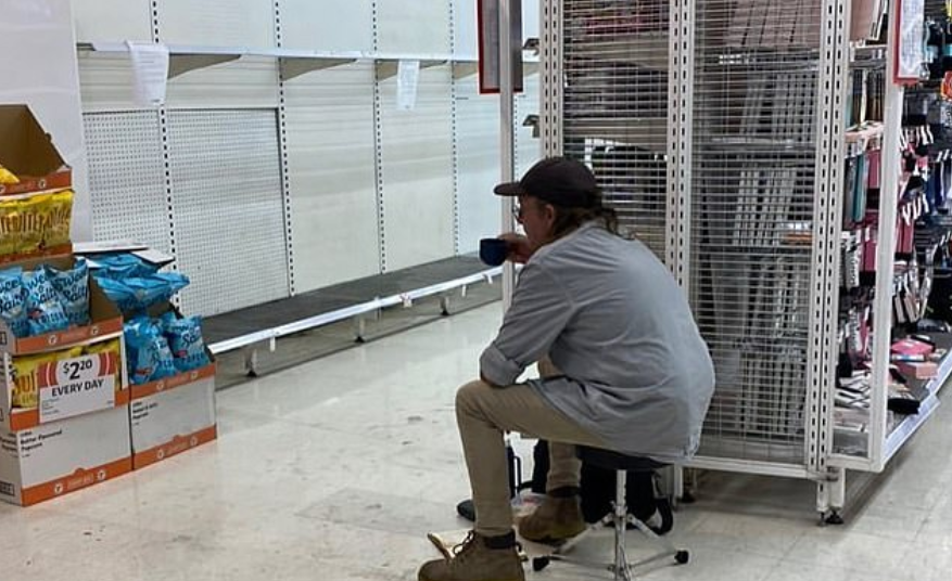 In the picture that went viral online, the male shopper was seen sitting on a small stool near an aisle determined to wait for the shelves to get restocked so that he does not miss out again.