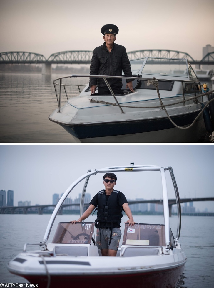 8. A tourist boat driver at Taedong River, Pyongyang, and his counterpart at Han River, Seoul.