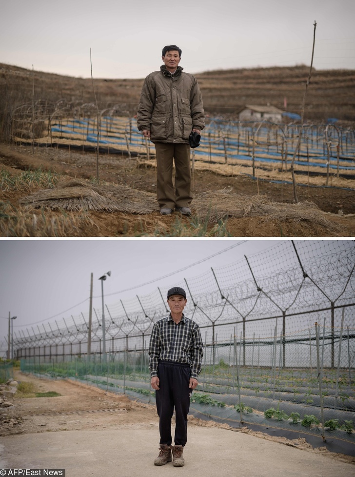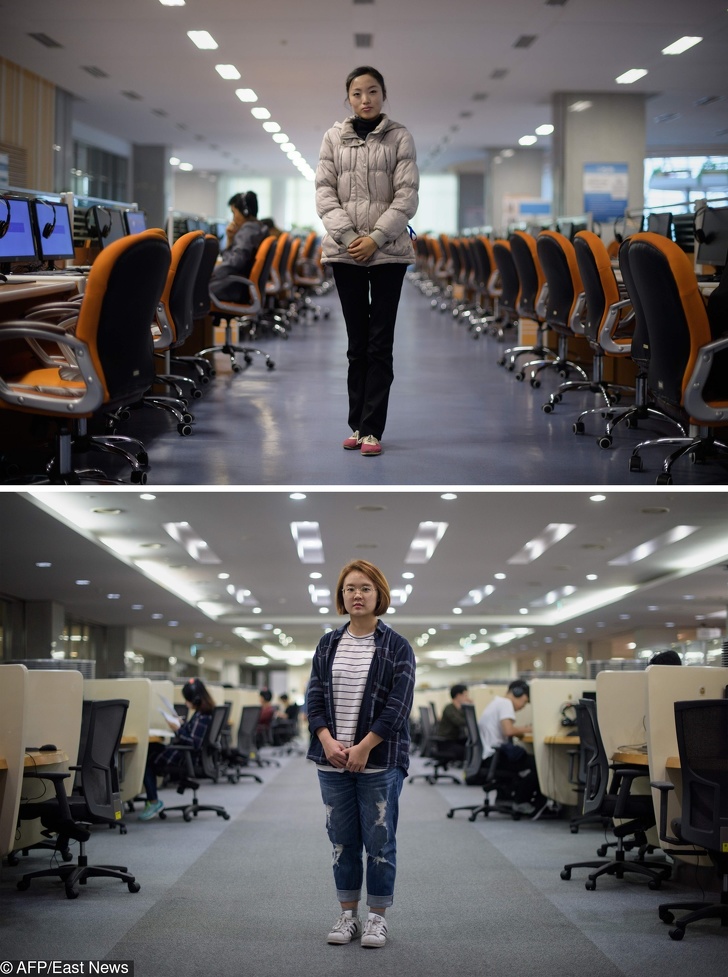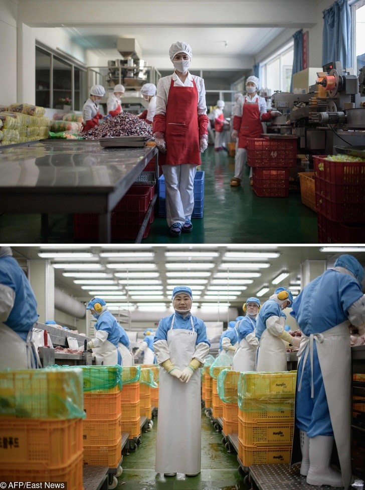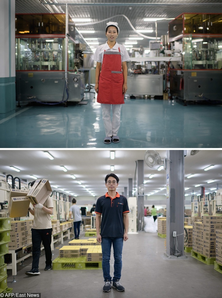 1. A factory worker in Wonsan, North Korea, and her counterpart in Chuncheon, South Korea.