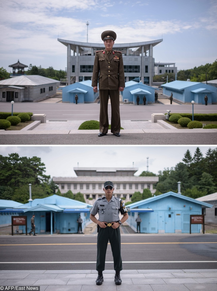 6. Military officers guarding the Korean Demilitarized Zone in North Korea and South Korea.