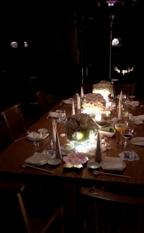 “Thank you, Nobu, for setting this up,” Kylie said in a video as she panned across the fireplace, lounge area, and the table. “I set up the cutest little dinner for my dad!”