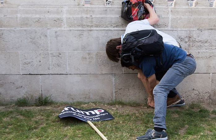 In a volatile exchanged that was caught on a shot, the protesters were seen argued over Mr. Trump’s infamous video from the year 2015 when he used ‘grab them by p***y’ phrase in relation to meet the women.