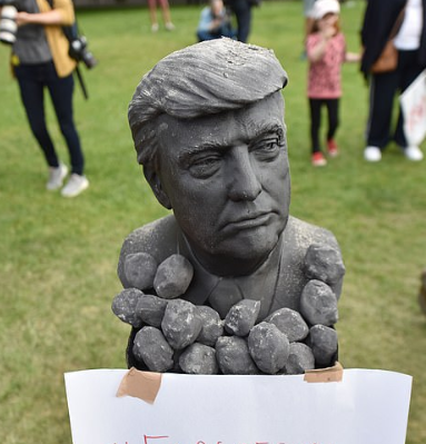 The anti-trump campaigners have been expected to fly the 20ft blimp that depicts him as the angry and half-naked as revealing a 16ft talking robot of Trump sitting on the gold toilet.