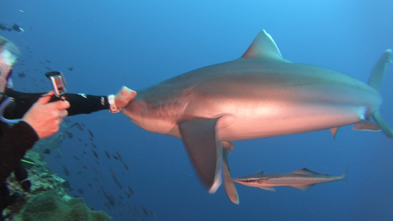 Dave and Kristy were filming the sharks with their GoPro when a shark came very close to Kristy.