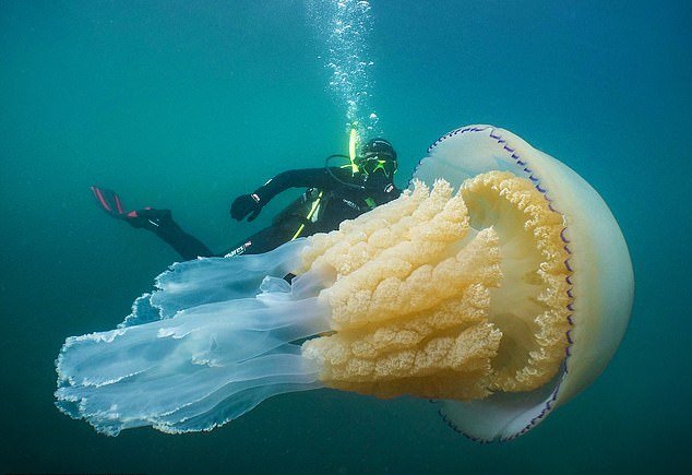 Divers and marine wildlife enthusiasts were left stunned in amazement after encountering a giant jellyfish as big as humans and capturing it on camera.
