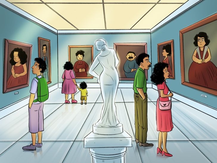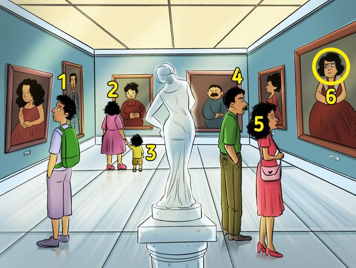 There are SIX people in this picture! While a lot of people couldn’t spot the sixth person, she’s definitely in there, disguising herself in the painting! Now, do you see her?