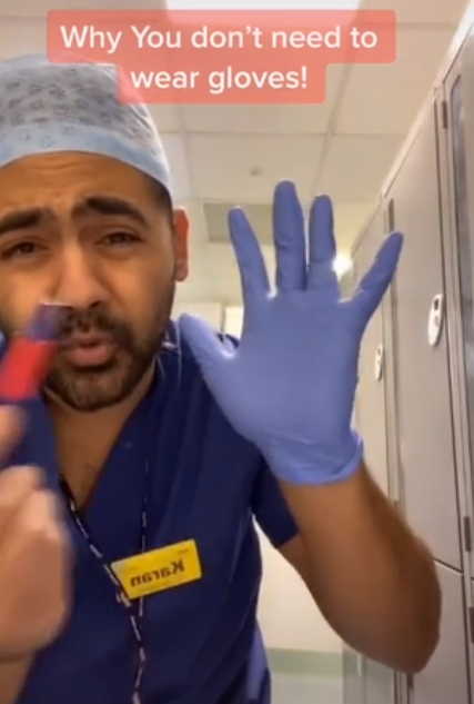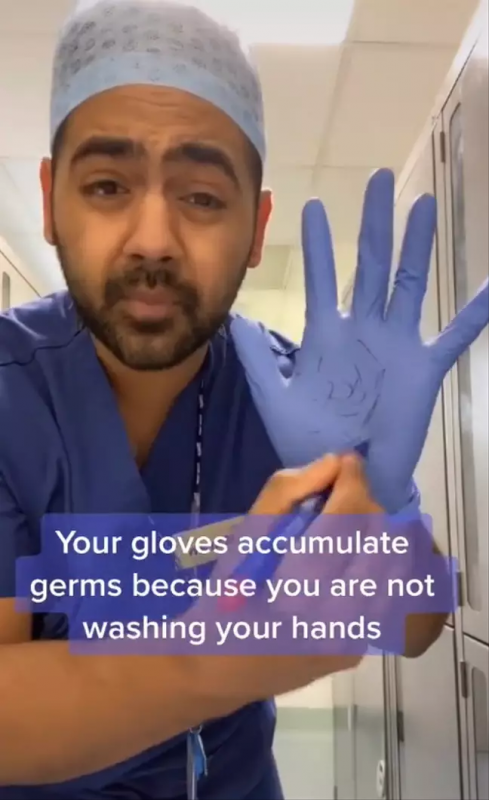 An NHS doctor decided to use social media to explain why people should not wear disposable gloves when buying groceries and other essentials in supermarkets.
