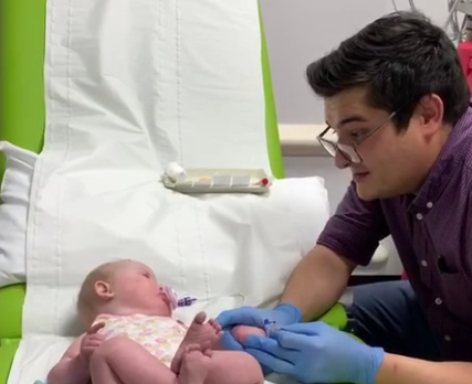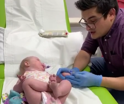 The video went viral on Facebook, and the viewers appreciated the cute gesture made by the doctor to keep the baby calm throughout the blood test.
