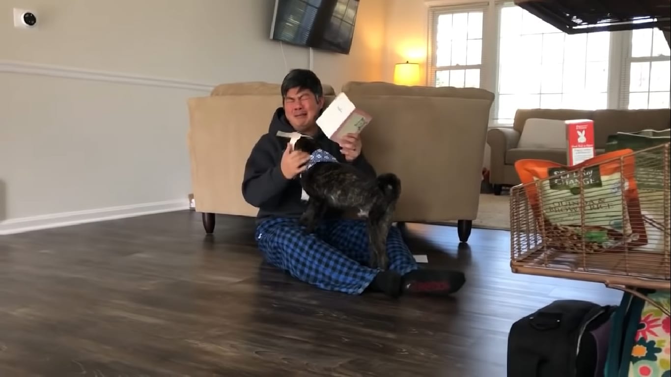 She told her husband that an adopter was visiting to look at Toby. She decided to capture the moment. And, when the inspector revealed that Toby will now be with them forever, her husband’s reaction was heart-melting.