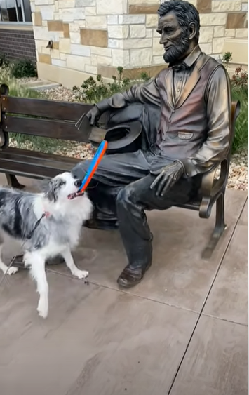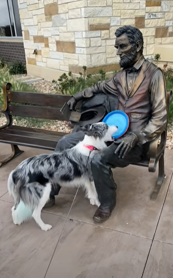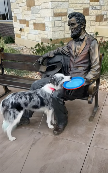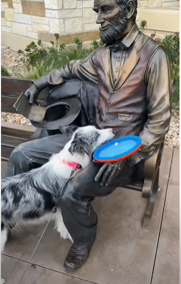 “She loves nothing more than playing Frisbee and chooses victims of any shape or size to play with her,” the owner said. “Even this statue of good ole Abraham Lincoln.”