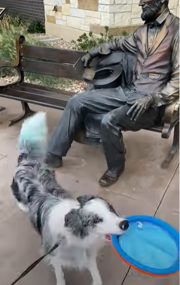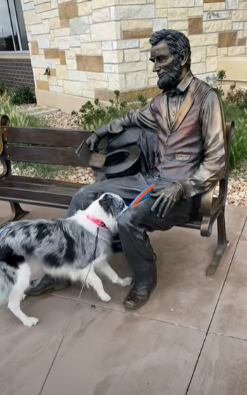 On September 13, in The Colony, Texas, the owner seemingly took the pup named Nova for a walk when they passed by Lincoln’s statue.