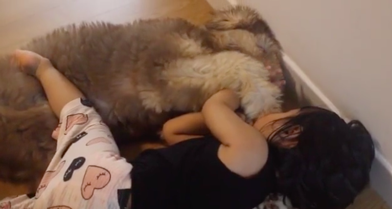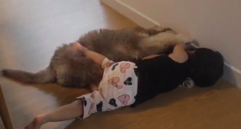 If you are an ardent pet lover, you will simply fall for this video. Both of them are seen to be clung onto each on the floor as if two friends are indulging a chit-chat session with each other.