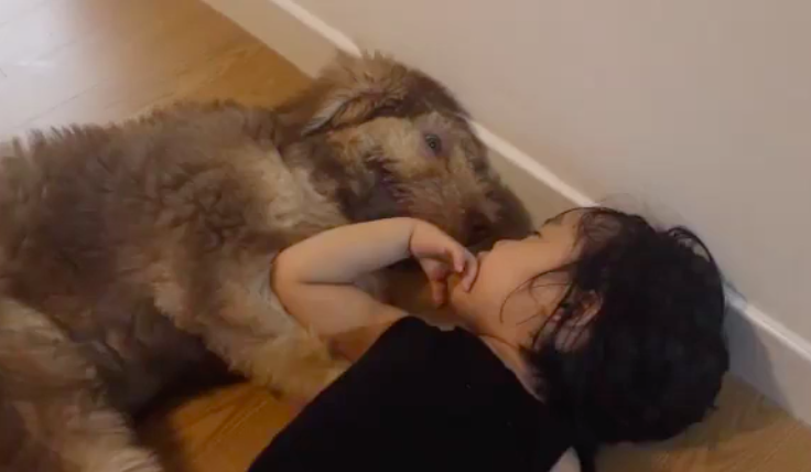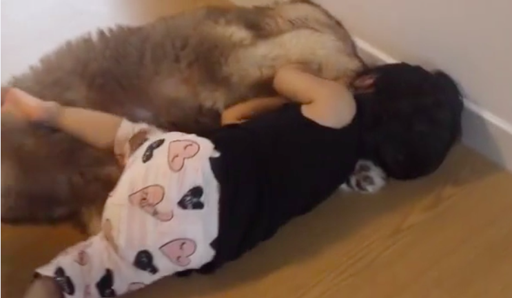 The video features an incredible bond between a baby girl and a dog.