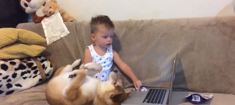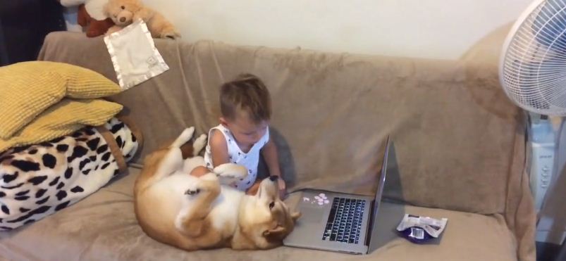 The video will melt your heart as the bond between both of them is so pure and lovable. The toddler is continuously pampering his pet dog and enjoying the lazy moment with him.