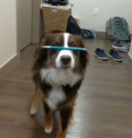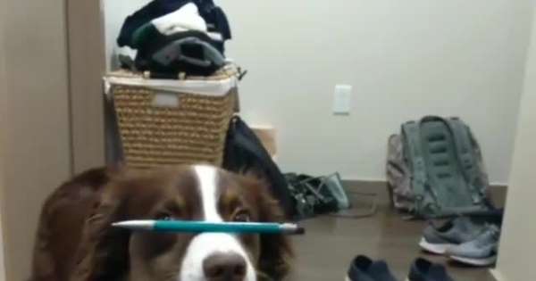 It is hilarious to watch the dog walk carefully so that the pen doesn’t fall and he doesn’t lose his balance. Having a pet around can uplift your mood in various ways and make you smile.