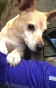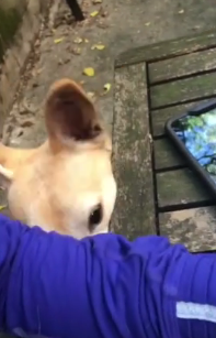 The dog is in a constant struggle of demanding attention and even though the student gave him a pet and rubbed him, he is just not ready to let go because he needs more and more of it.