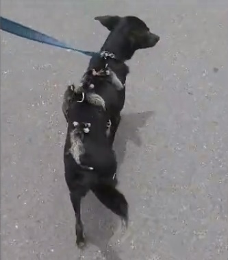 A friendly dog was caught on camera going for a walk with its owner while carrying a group of opossum friends on its back.