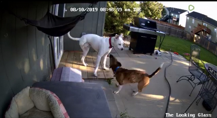 In the case of one household, the friendship between two dogs was very much on display. The bigger dog is missing one hind leg and was sick, so he had spent some time at the veterinarian’s clinic. His buddy, who’s smaller, can’t help but run up in joy when his best bud finally shows up at home again.
