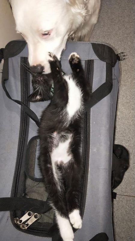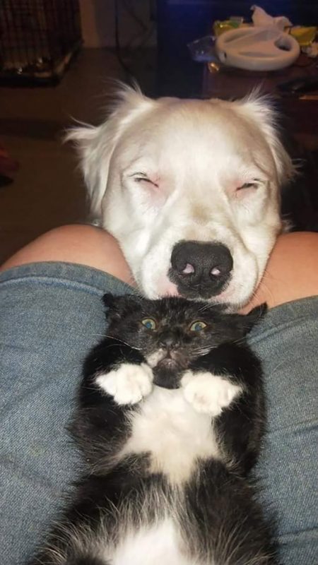 “He’s done that with every rescue I take in. He will just sit patiently with the feral cats/kittens and bonds so strongly with them, they trust him before they trust me.”