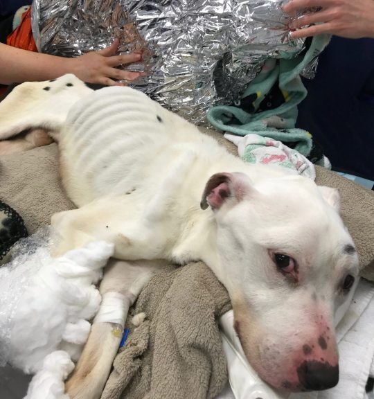 When he was found, he was too thin that his ribs were clearly visible. He was unable to stand so the rescuers had to wrap him in a metallic thermal blanket to keep him warm.