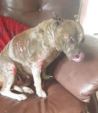 Following the attack, Patch the Staffordshire bull terrier suffered severe burns all over its body and was put down by the vet.