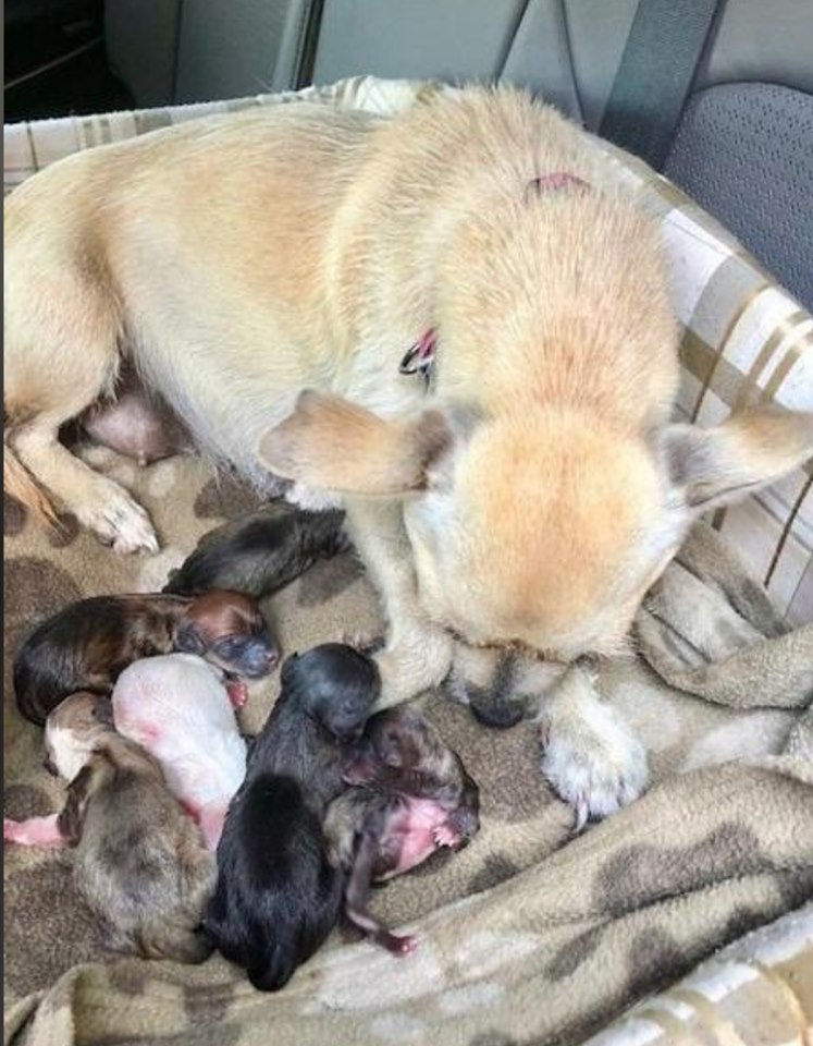 They rescued the pregnant dog named Lizzy but even before reaching their home, the dog had already given birth to six puppies in their car.