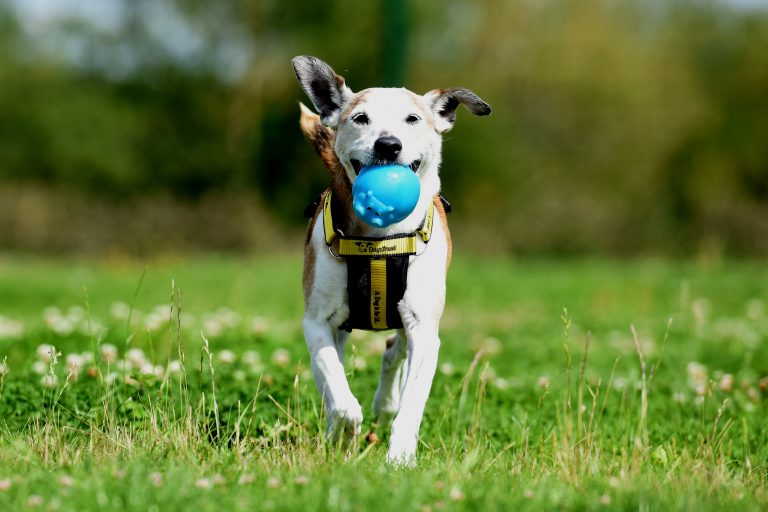 “He has started to get a little bit blind and his back legs are a bit wobbly at times but he still plays like a puppy. He is still very obsessed with tennis balls and he is very food orientated.