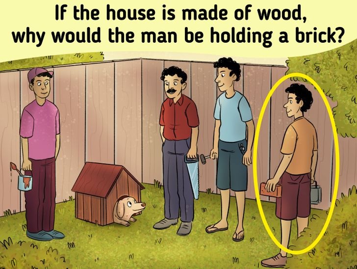 As you can see, there are four men in the image above. But the truth is, only four of them participated in making the dog house. Can you figure out who didn’t help them?