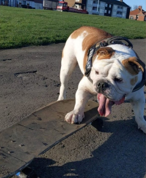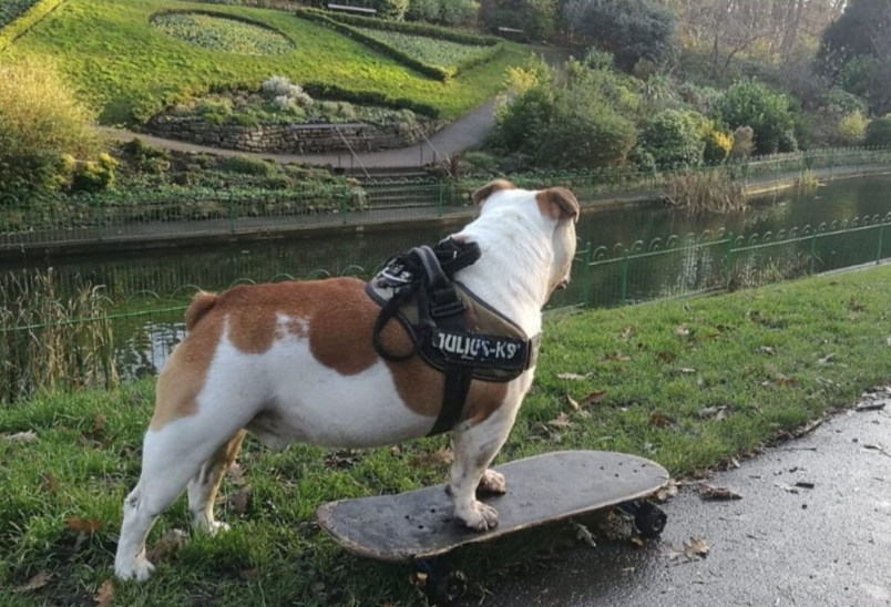 The British bulldog is “very serious” about skateboarding. He had his first experience of the sport in 2017 when he was just three months old.