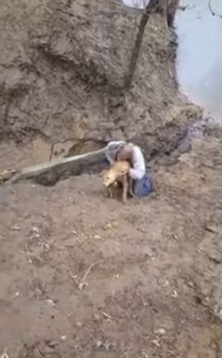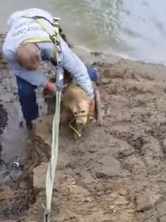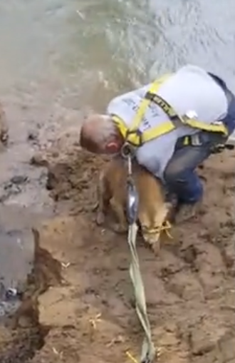 Ginger was wise enough to understand what was going on as she did not make it hard for the rescue team to save her. Still, to be on the safer side, he went down and before grabbing her, he tied a little rope around her mouth to keep her from biting him.