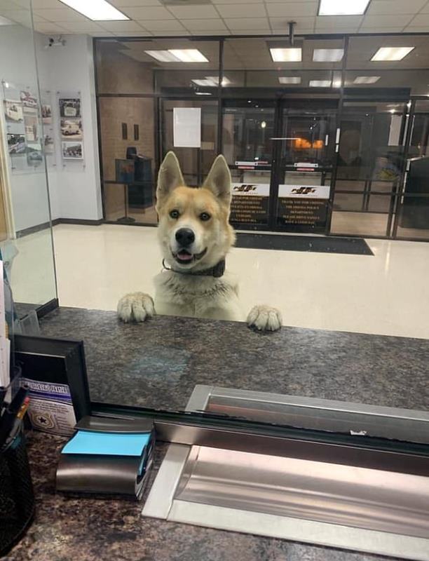 The Odessa Police Department shared cute photos during the short visit and joked: “So…. this happy guy randomly strolled into the front desk of the Police Department last night.”