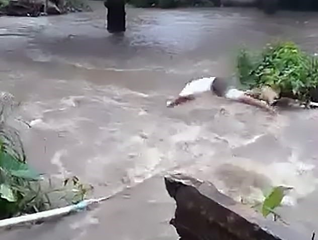 Immediately, Mr. Calderon jumped in as well and managed to catch up with Fulo before throwing him to safety on a nearby bank.