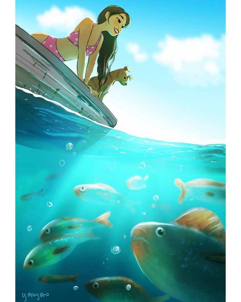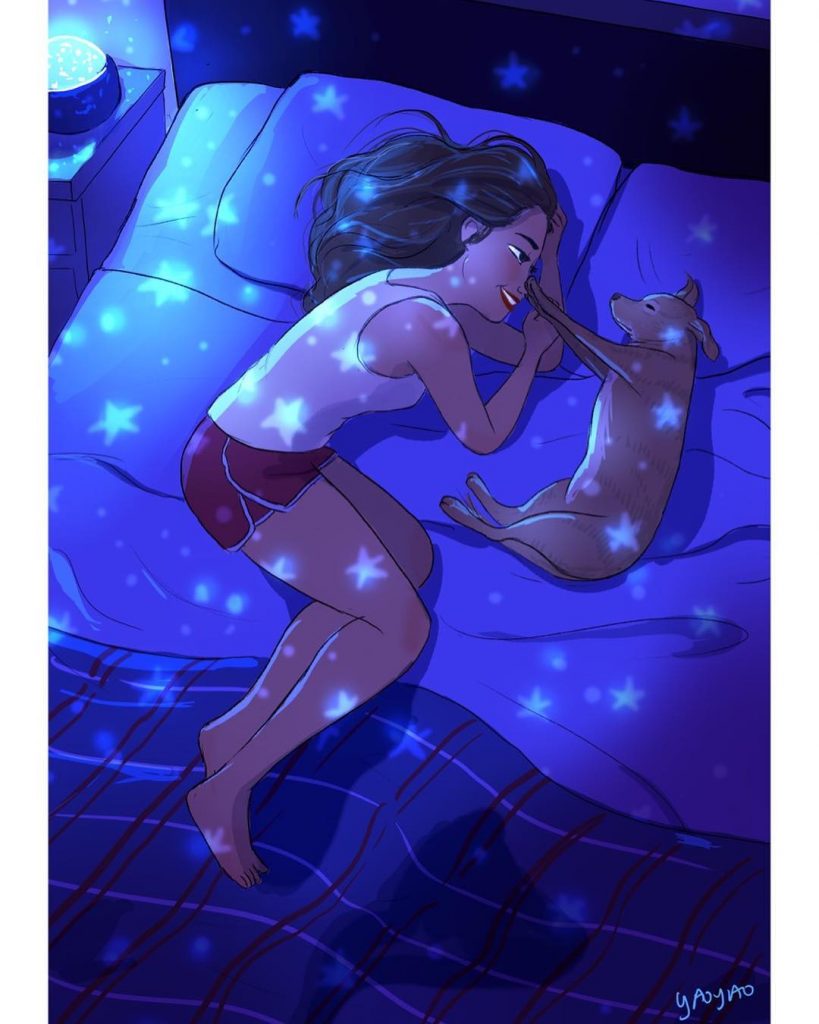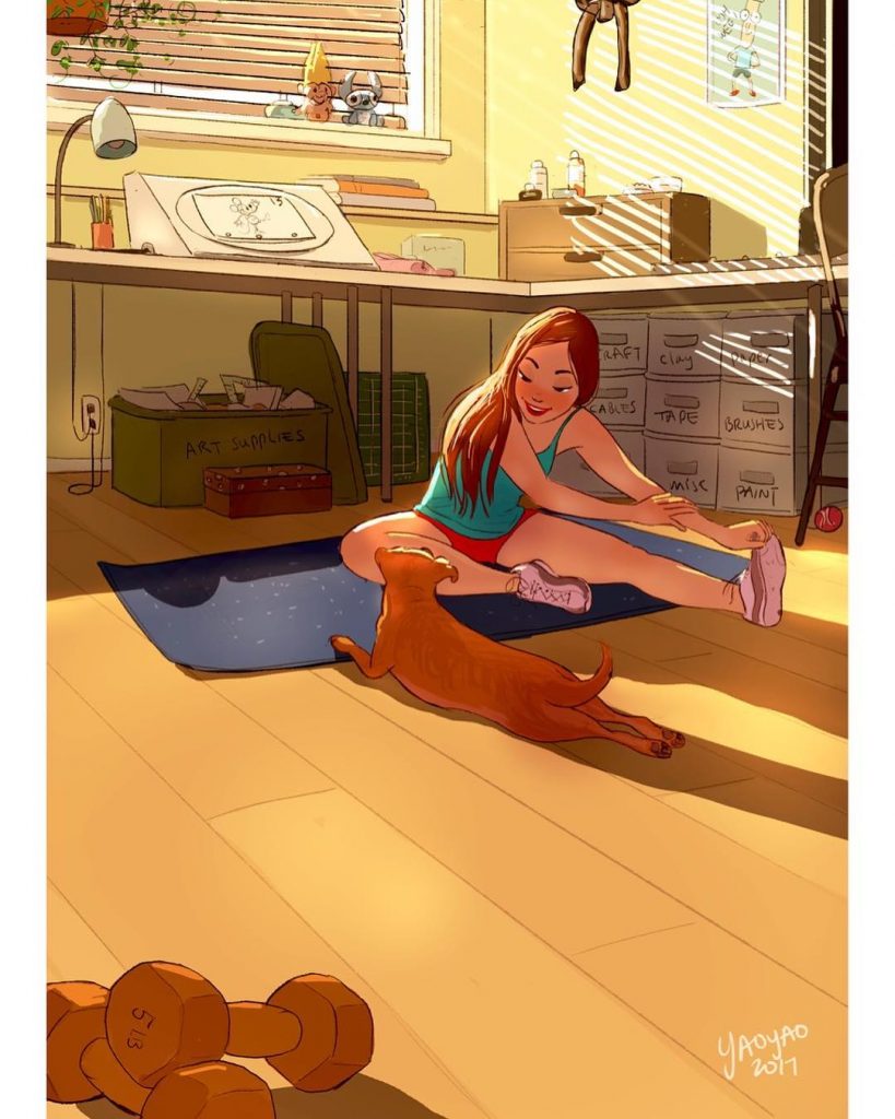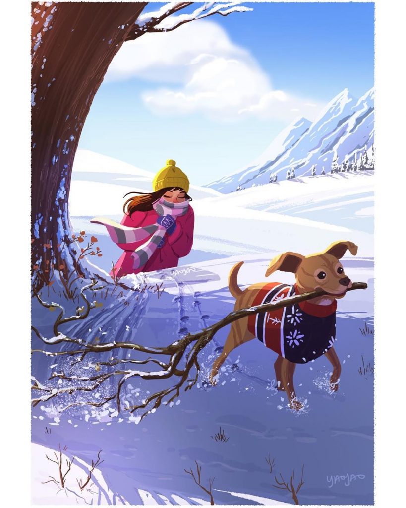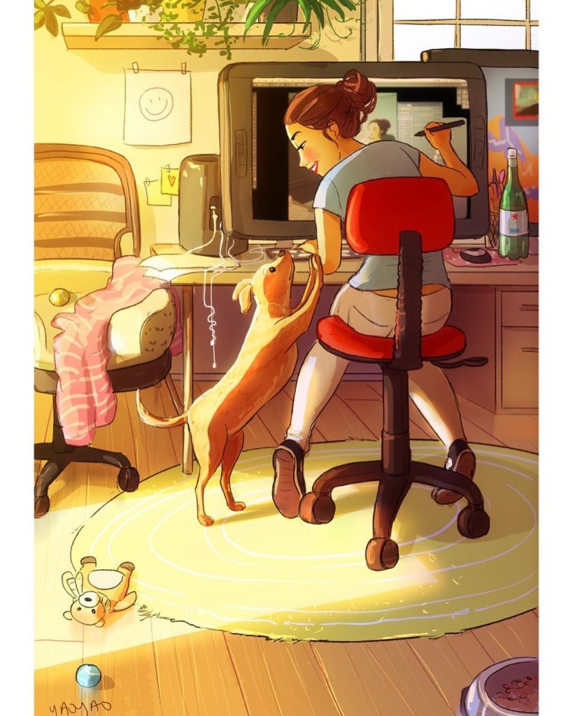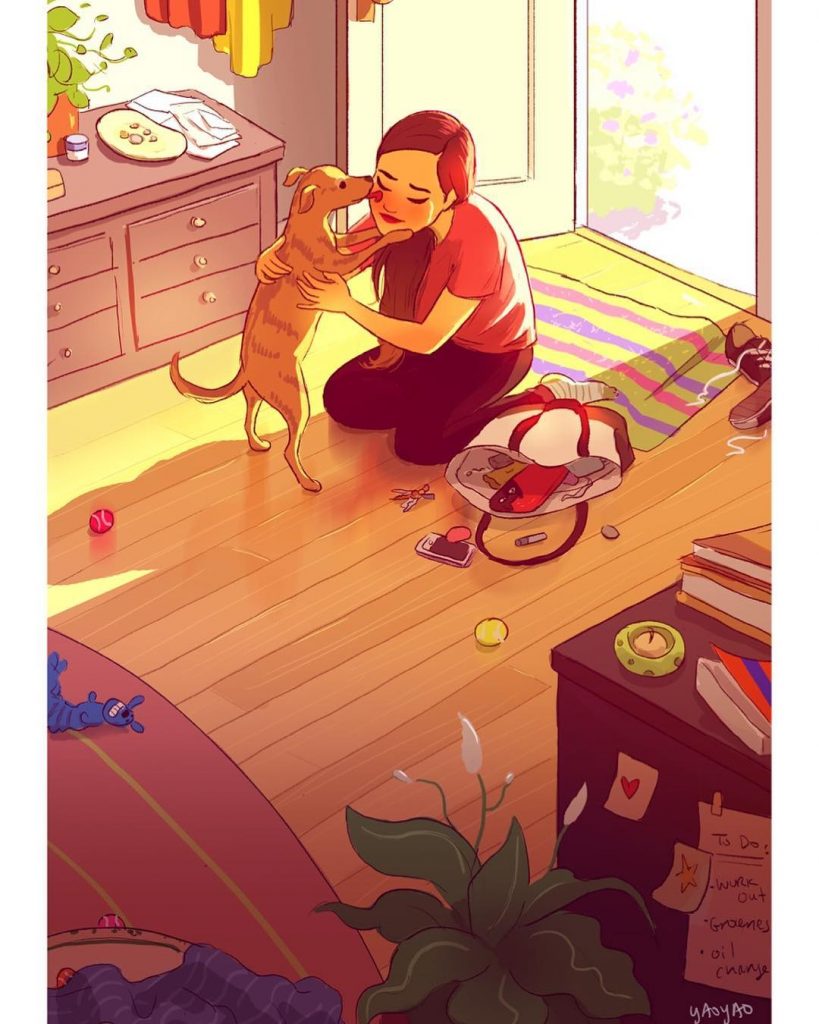 Yaoyao Ma Van is an artist from Los Angeles that illustrates warm and sunny pictures regarding herself and her dog Parker.