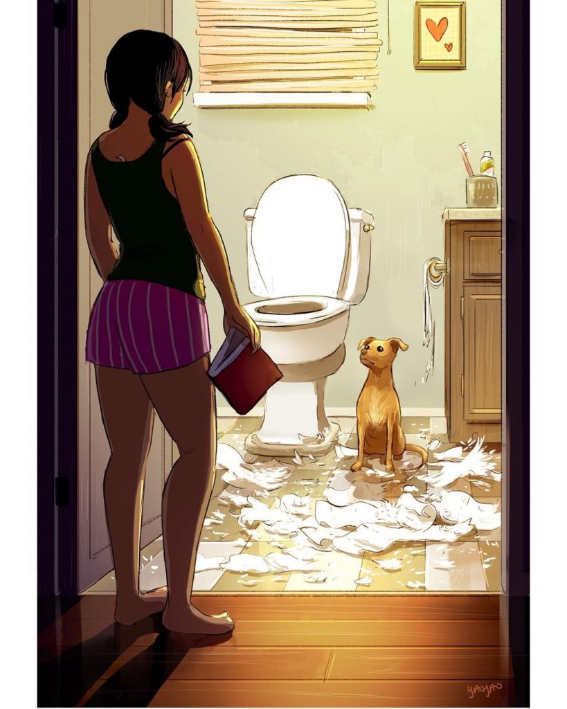 The illustrations are about the life of a dog owner and everyone who has a dog will recognize and relate themselves in these situations.