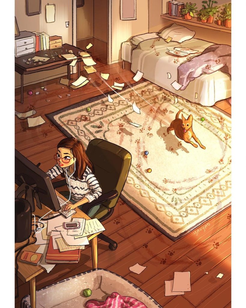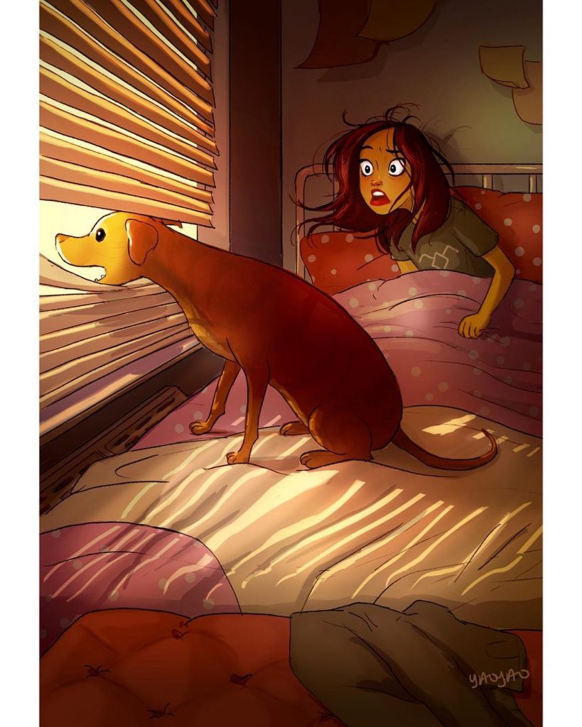 Below are some of her illustrations that show dog owners will never feel lonely!