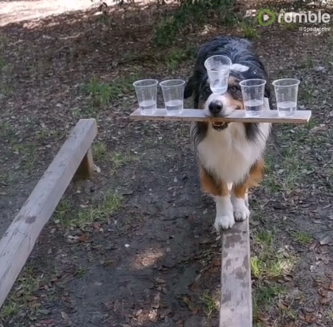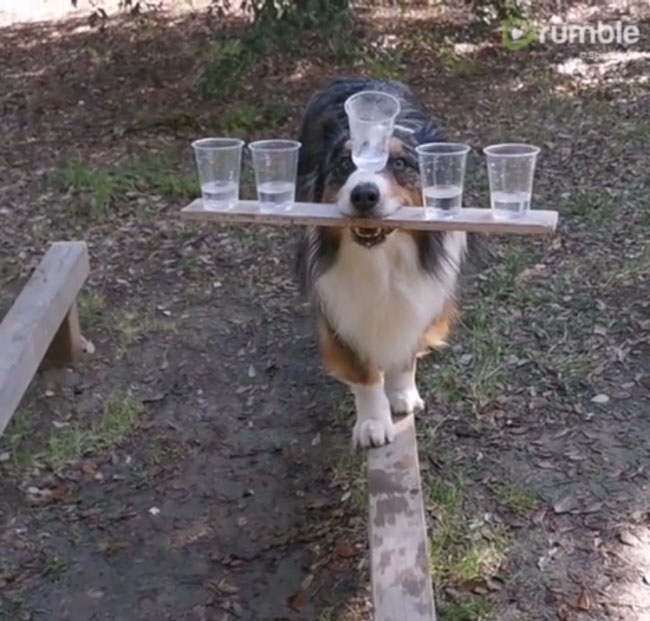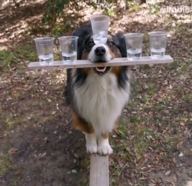 Rush can balance five cups of water while walking on a thin beam. The video shows Rush walking on a thin beam while balancing five cups of water. Isn’t it cool?