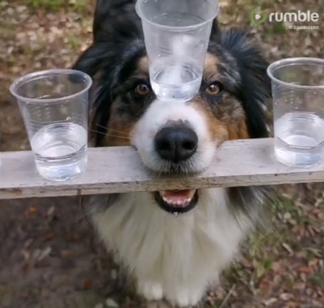 Australian shepherd named Rush was filmed in central Italy while performing a balancing act.