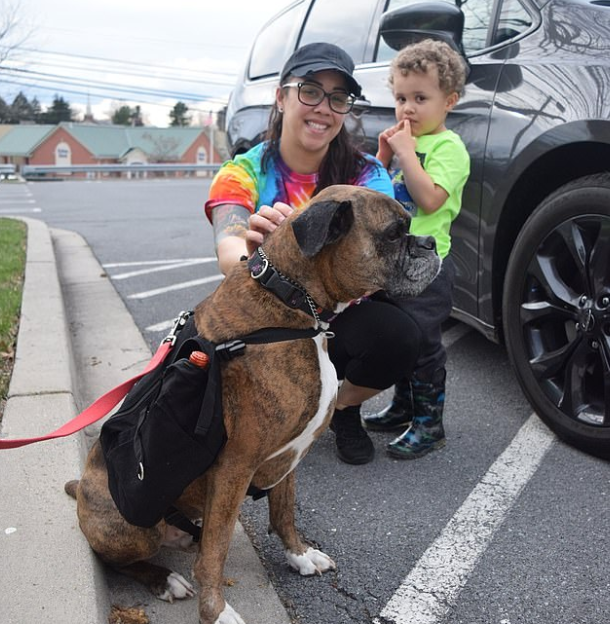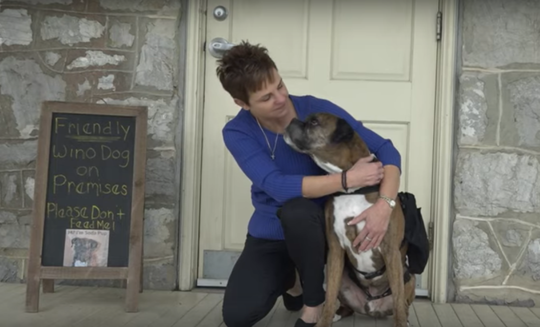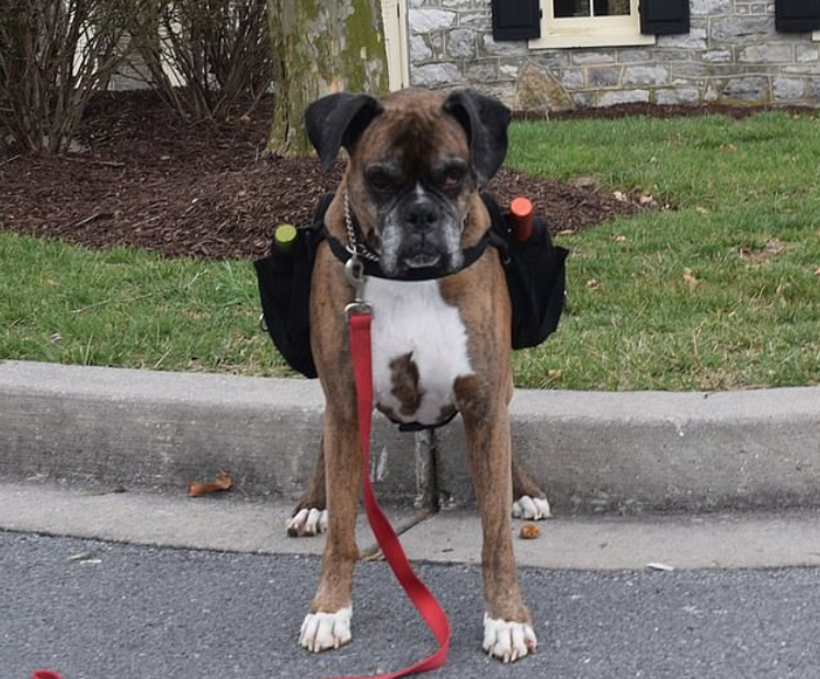 Speaking to Herald Mail, the owner of the 75-pound Bullboxer Pit, said: “We tuck the wine in his vest and send him out with the wine bottles.